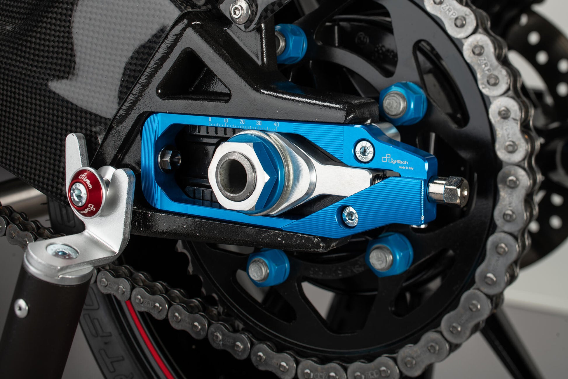 Le réglage rapide et millimétrique de la chaîne - particulièrement utile dans les conditions de course ou les pneus. -