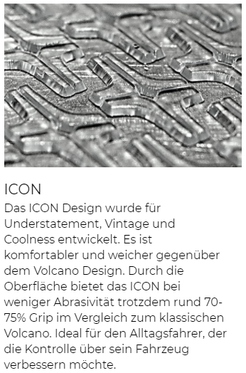 - 70 à 75 % de l'adhérence du design Volcano classique