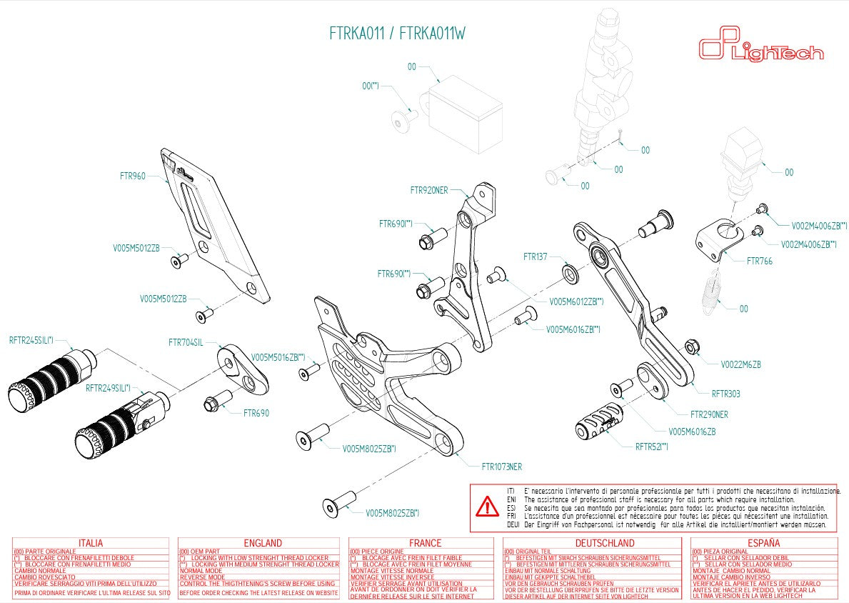 Le LightEch FTRKA011 / W est le système de repose de pied idéal pour les conducteurs sportifs du Kawasaki ZX-10R / RR (2021-2025). Il combine la technologie CNC sans compromis avec des matériaux de la plus haute qualité pour une rétroaction optimale et une résilience à la rue dans la rue et sur l'hippodrome.
