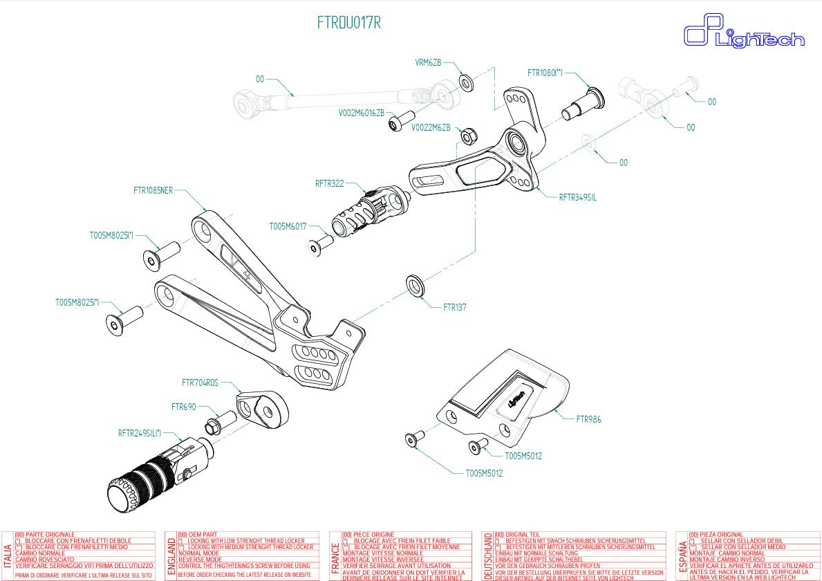 Le système de repos léger FTRDU017R pour le Ducati Panigale V4 / S (Model Year 2025) est le Top Model absolu parmi les systèmes de repose-pied de course conçus pour les pilotes qui exigent une fonction sans compromis, une durabilité maximale et une conception sportive.